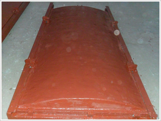 門體一般采用面板與加強肋的結構,面板可做平面或拱形。門體一般整體鑄造和機加工,但尺寸較大的可采用分塊組成式。門體上一般采用整體式金屬止水,兼作支承滑塊,金屬止水用同材料制作的沉頭螺釘緊固在門體上,螺釘頭部與止水工作面一起精加工,一些尺寸較大的也可“p”形橡皮止水。